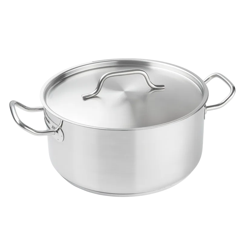 Cacerola baja de acero inoxidable con tapa. Apta para inducción.