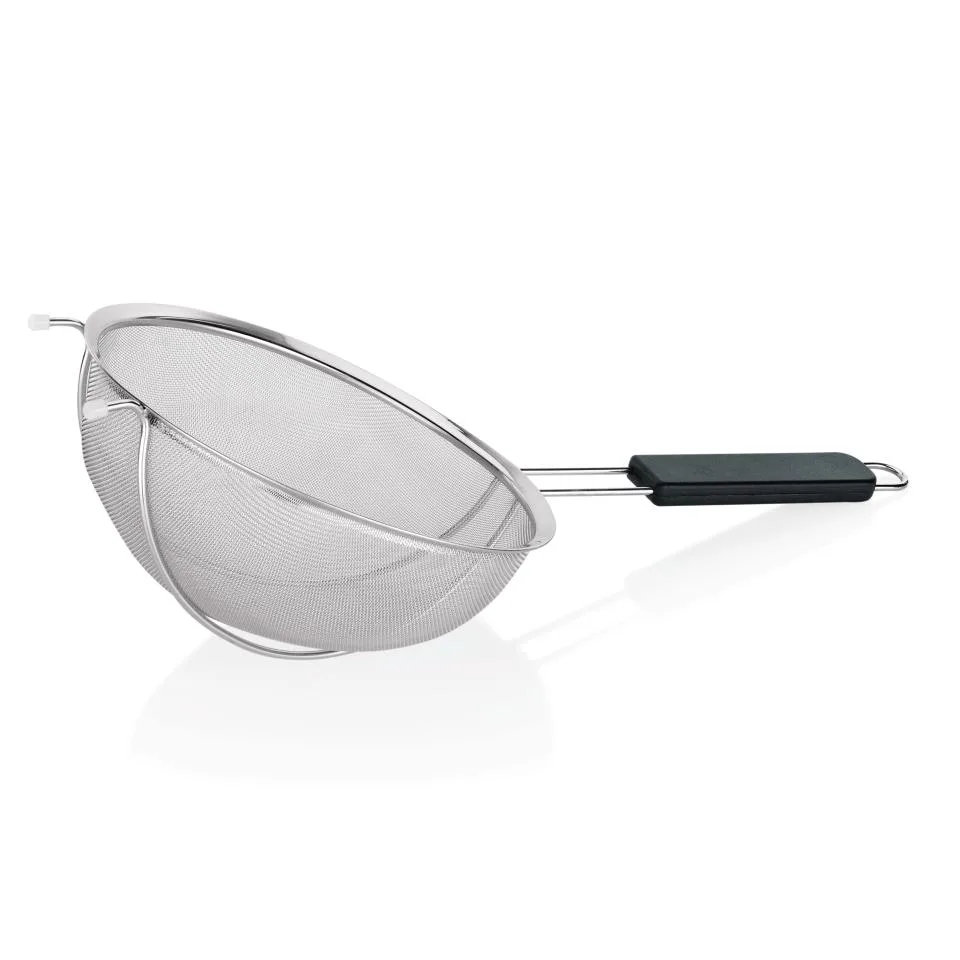 Es un utensilio para cocinas profesionales esencial para filtrar y colar líquidos mientras retiene los ingredientes sólidos de manera eficiente.