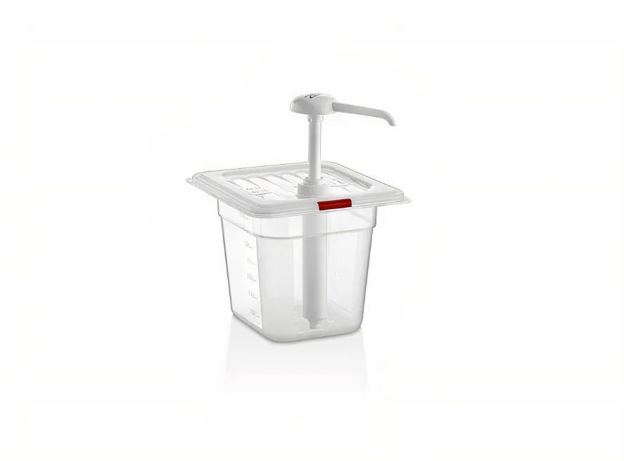 • La bomba está fabricada en polipropileno (PP) y dispensa 20 ml de salsa al presionar la bomba hacia abajo.