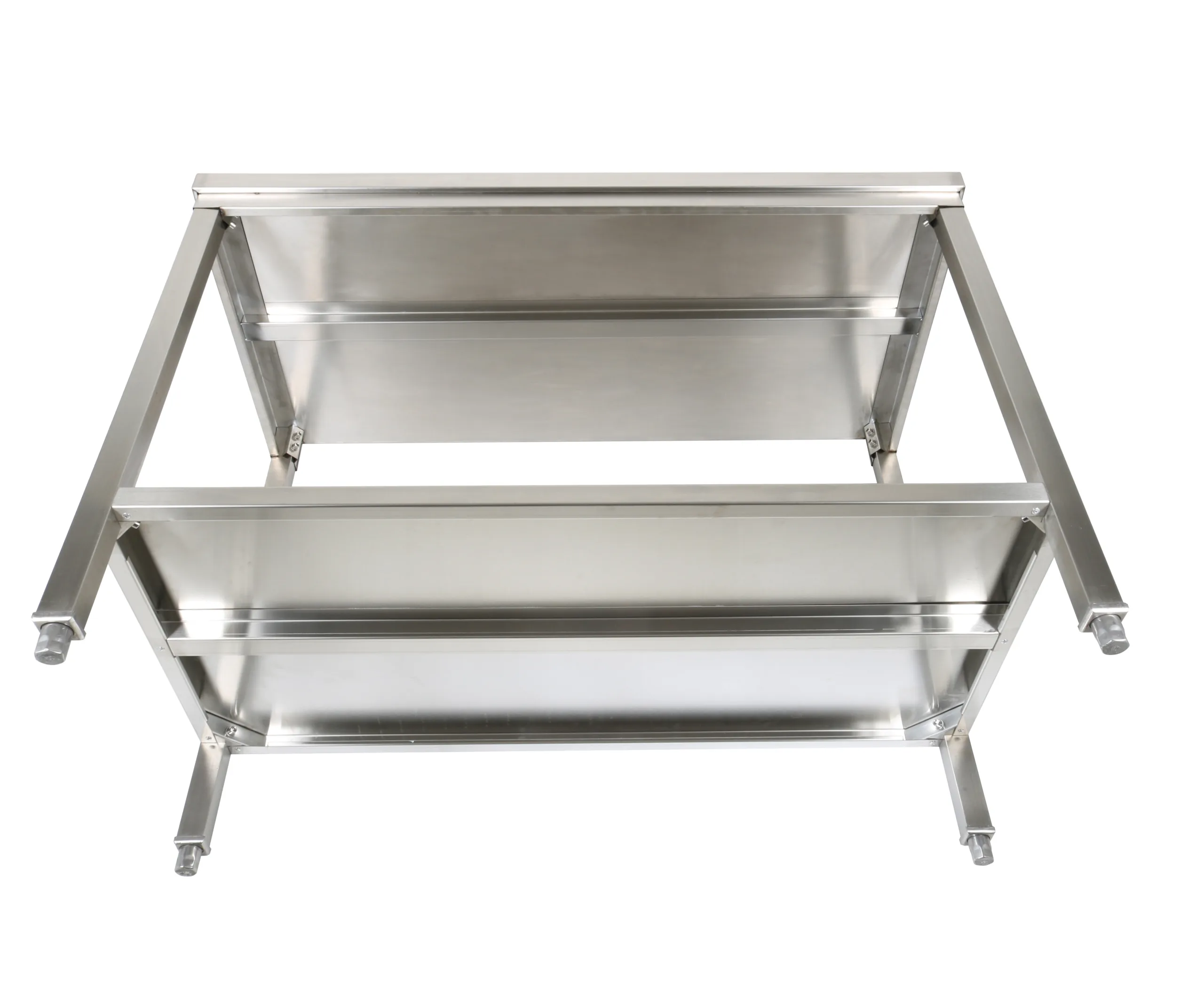 Otra función importante de la mesa de trabajo es que en su estante inferior se pueden guardar utensilios, batería de cocina, sartenes, equipos o ingredientes, por lo que ahorra espacio en la cocina.