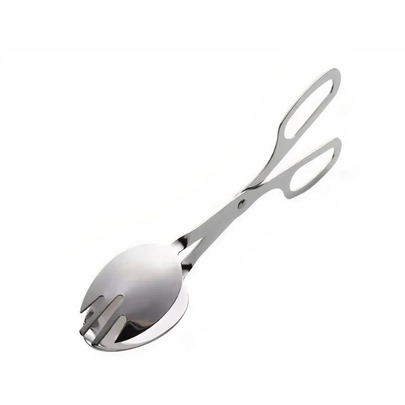 Diseñada para servir ensaladas: dos palas en forma de cuchara, una de ellas lisa y la otra en forma de cuchara-tenedor para un perfecto agarre de los alimentos.
