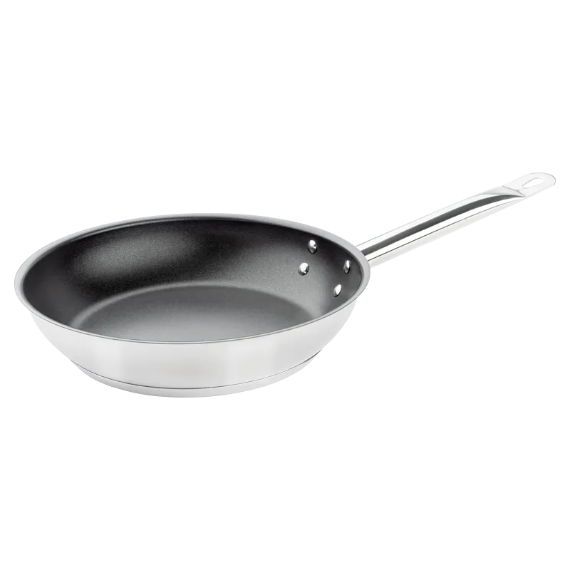 Sartén antiadherente de acero inoxidable. Apta para inducción.