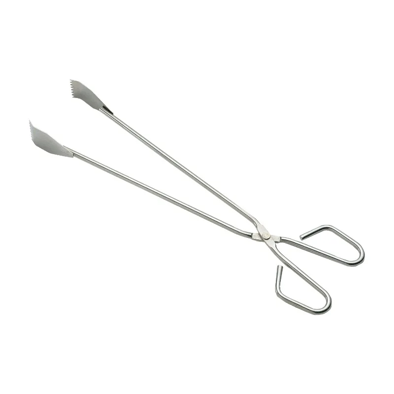 Consiste en dos varillas largas al final de las cuales están soldadas una pala plana en una y una pala en forma de tridente en la otra, para conseguir un mejor agarre de los alimentos. Las propias varillas se doblan sobre sí mismas para conformar unas ergonómicas asas para un cómodo manejo de la tenaza.