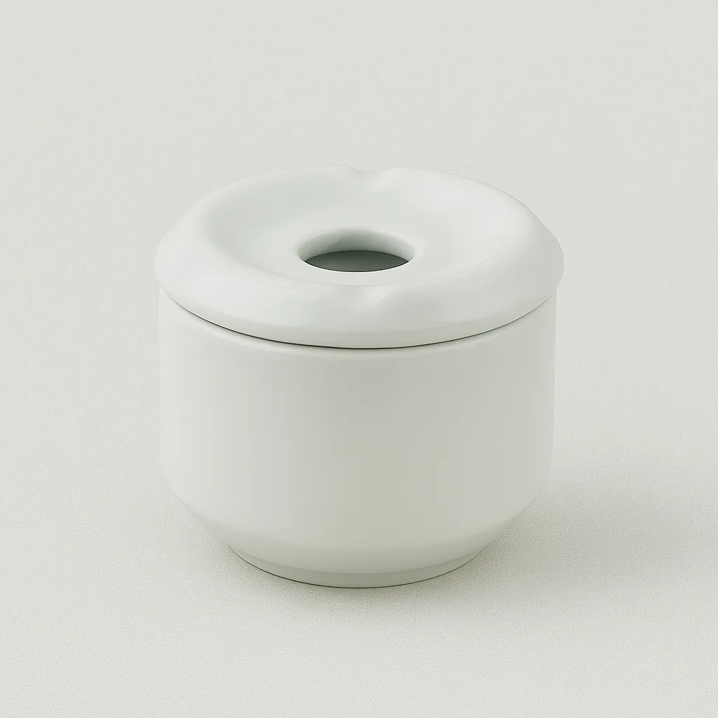 Tapa separada del cenicero con un orificio en el medio para introducir los cigarrillos. La tapa evita que se vean los cigarrillos del interior del cenicero.